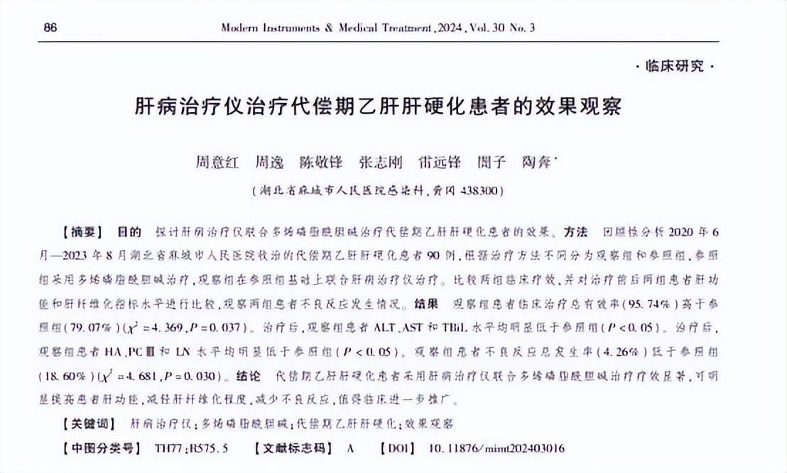 [1]周意红.肝病调养仪调养代偿期乙肝肝硬化患者的恶果不雅察 ,当代仪器与医疗,2024-06-25